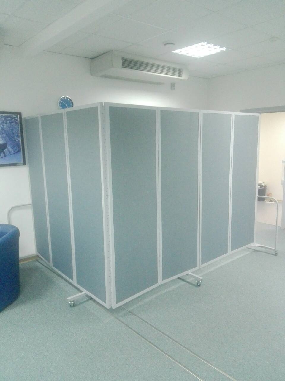 Для свободностоящих перегородок с механизмом гармошка из более чем 4 панелей обязательно нечетное количество секций и дополнительные боковые опоры.
