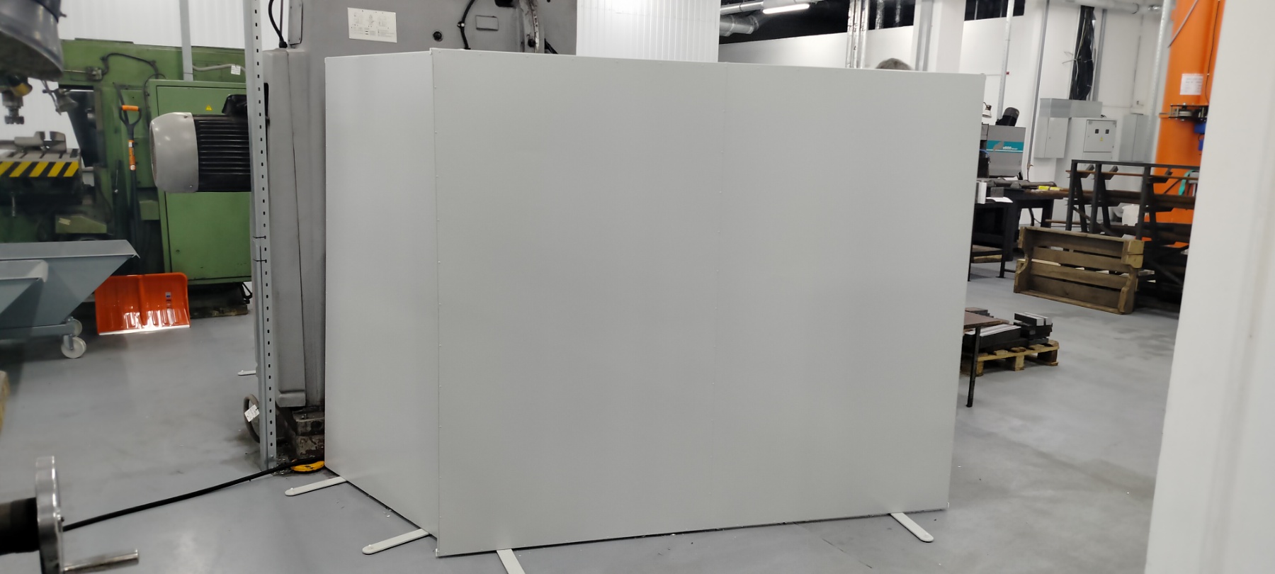 Ширма LNS-F1/S - это напольный металлический экран с каркасом из профильной стальной трубы, зашитый с двух сторон стальным листом с полимерным покрытием, предназначен для ограждения мест проведения работ, связанных с токарной, слесарной, фрезерной обработкой металла, для защиты от металлических опилок и стружки.